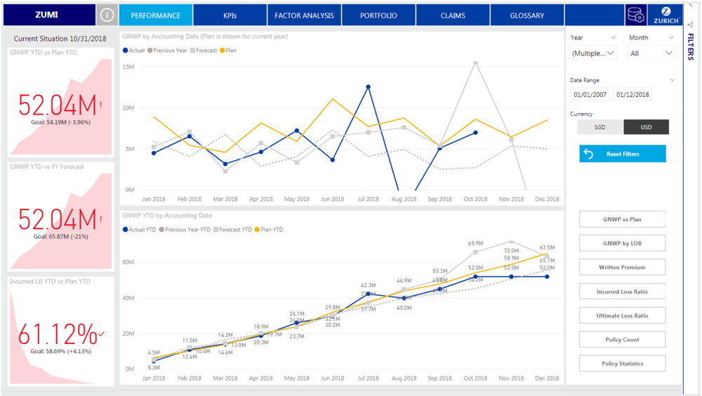 Power BI application for portfolio management and claims handling. 2018 - 2019